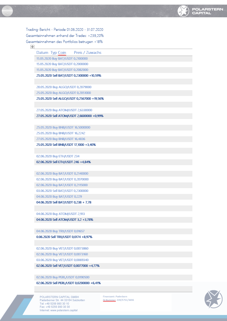 Die Rendite der einzelnen Transaktionen belief sich auf +239,20%. Die Gesamtrendite der Aktiven im Bereich der Kryptowährungen betrug +18%